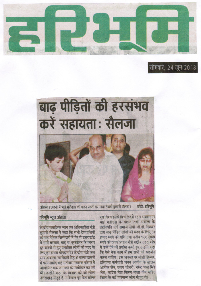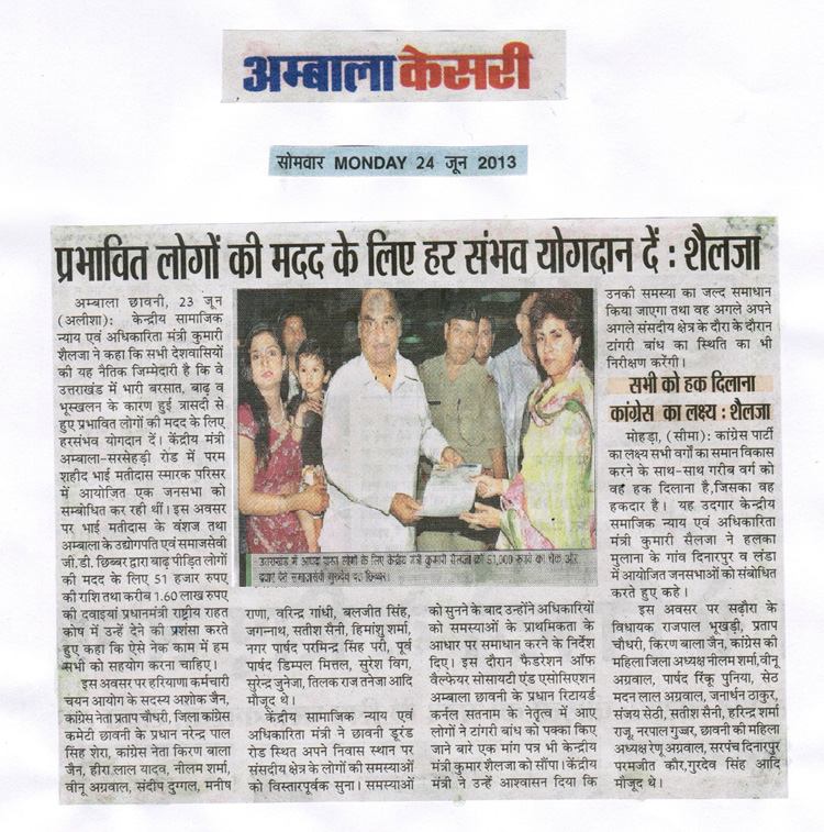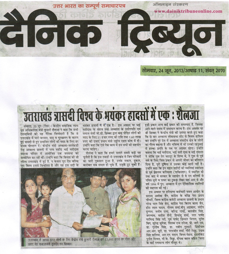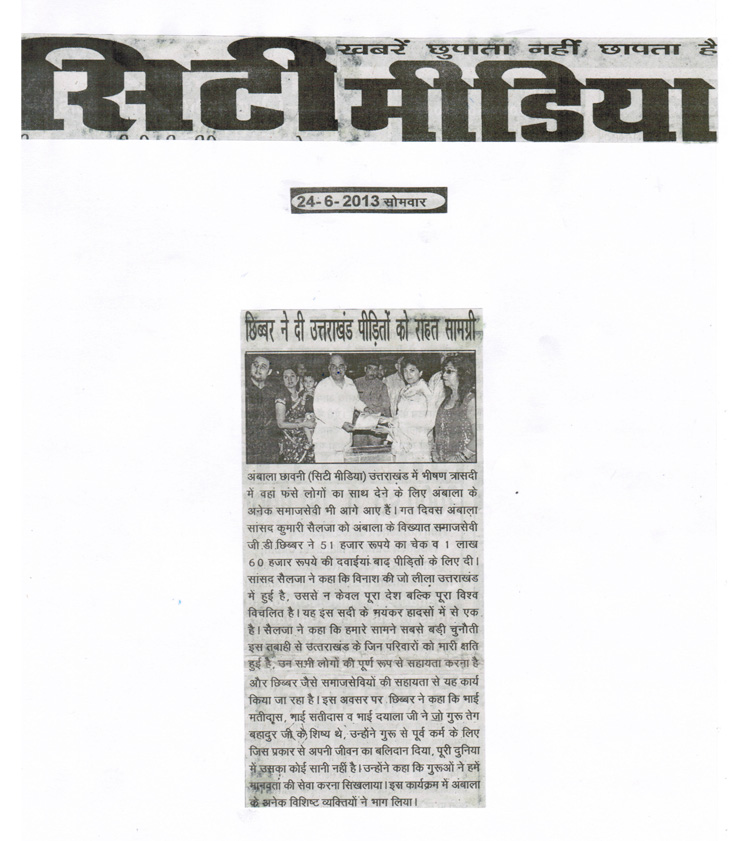 medicines from the Chairman Bhai G D Chhibber |
